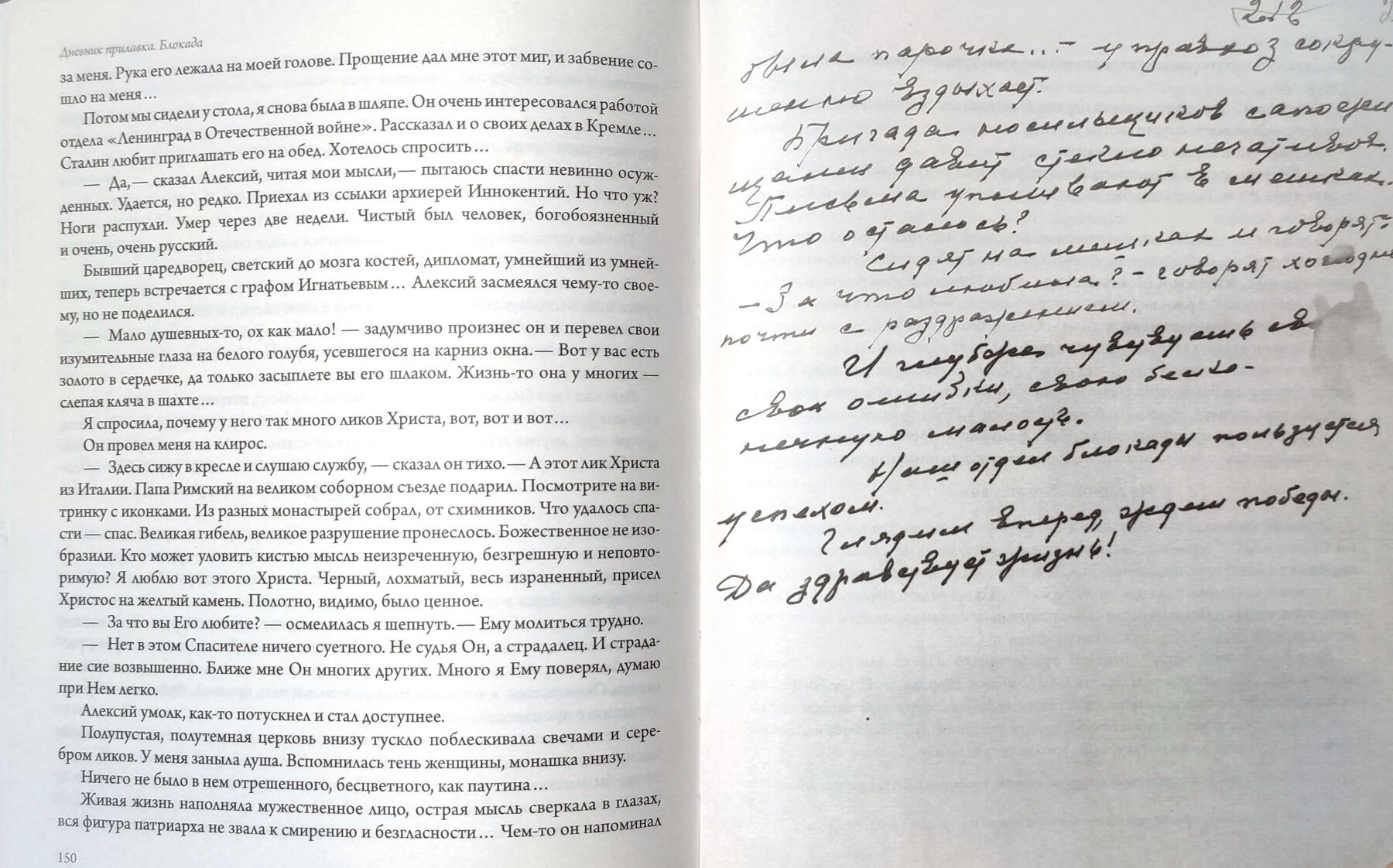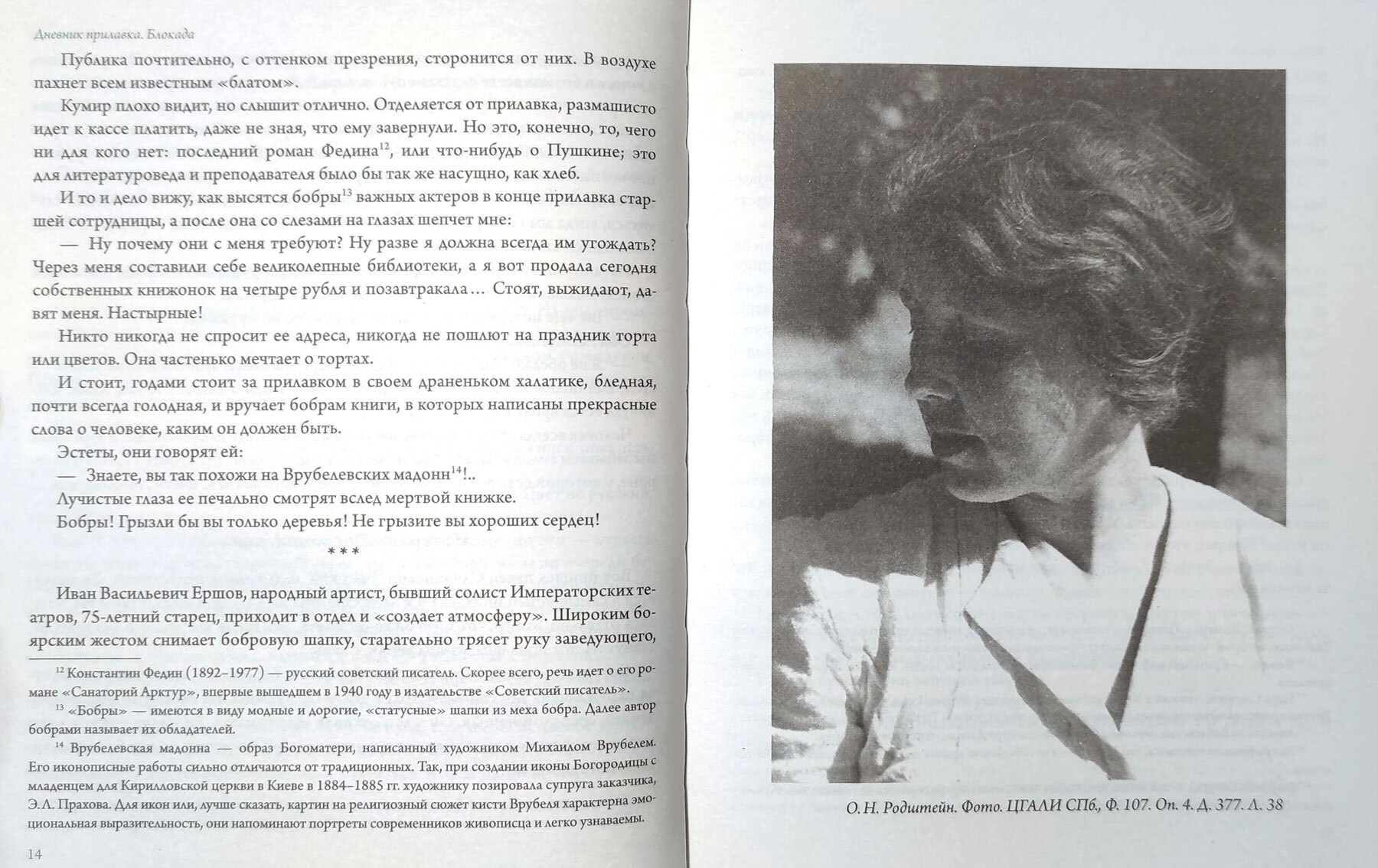 Это — «Дневник прилавка», безмятежность которого резко обрывается словом «Блокада», ставшим заголовком второй части. Именно здесь мы встречаемся и с мужеством, и с болью жителей города на конкретных примерах дневниковых записей о блокадной жизни через призму личности, выполненных перьевой ручкой, не только классических по форме, но и отвечающих литературному вкусу читающей публики того времени. И переживаем описанные события вместе с автором.
