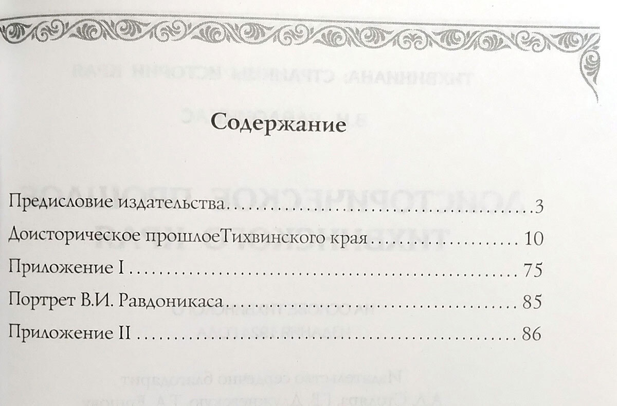 Этим изданием мы пытаемся осуществить мечту Владислава Иосифовича Равдоникаса - оснастить его книгу иллюстрациями. Наше издание выходит через восемьдесят шесть лет после первого его появления на свет - как некого пособия, выпущенного небольшим тиражом в Тихвинской уездной типографии. Книга эта давно стала библиографической редкостью, но до сих пор представляет большой интерес для любителей истории северо-востока Ленинградской области.