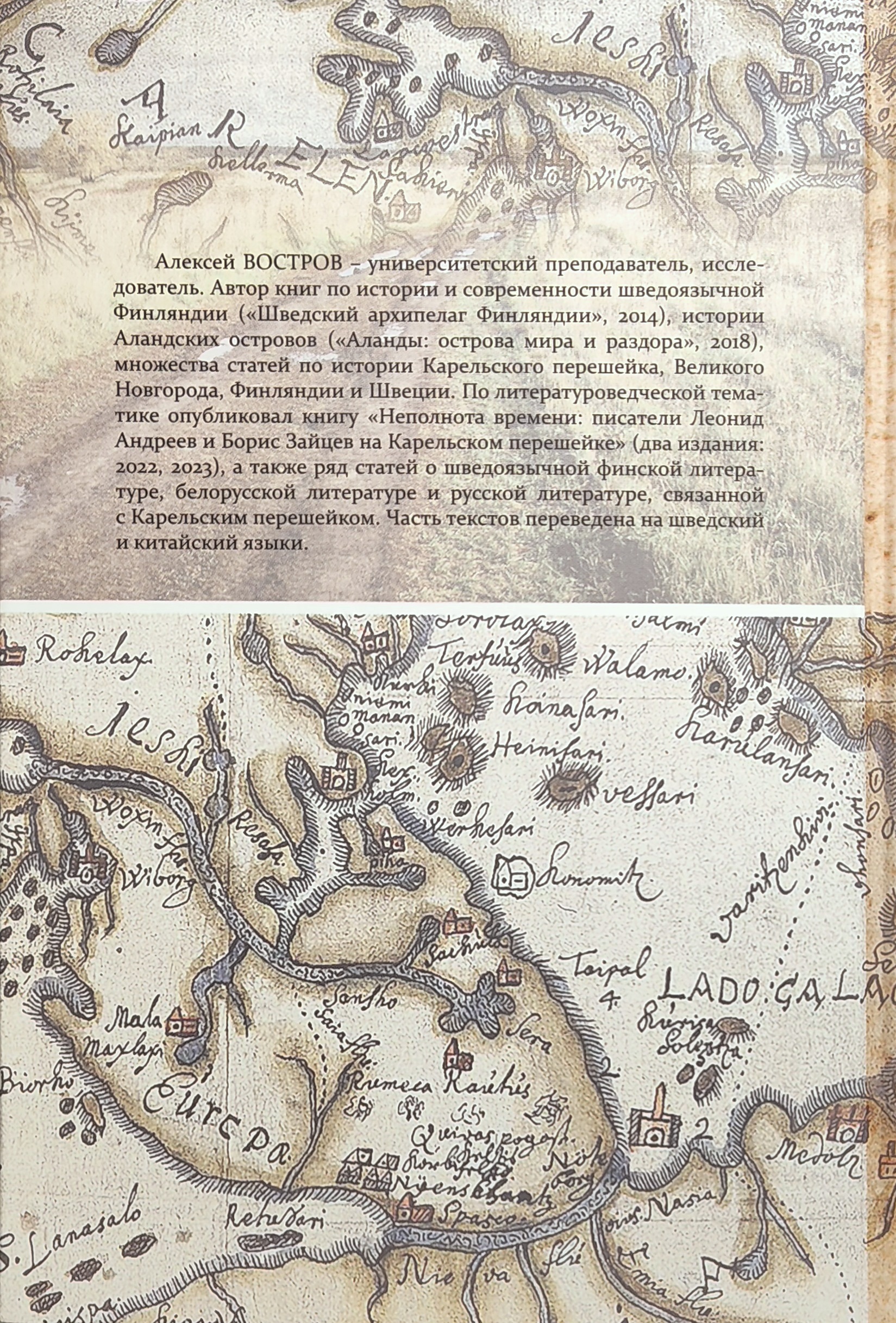 Алексей Востров — университетский преподаватель, исследователь. Автор книг по истории и современности шведоязычной Финляндии («Шведский архипелаг Финляндии», 2014), истории Аландских островов («Аланды: острова мира и раздора», 2018), множества статей по истории Карельского перешейка, Великого Новгорода, Финляндии и Швеции. По литературоведческой тематике опубликовал книгу «Неполнота времени: писатели Леонид Андреев и Борис Зайцев на Карельском перешейке» (два издания: 2022, 2023), а также ряд статей о шведоязычной финской литературе, белорусской литературе и русской литературе, связанной с Карельским перешейком. Часть текстов переведена на шведский и китайский языки.