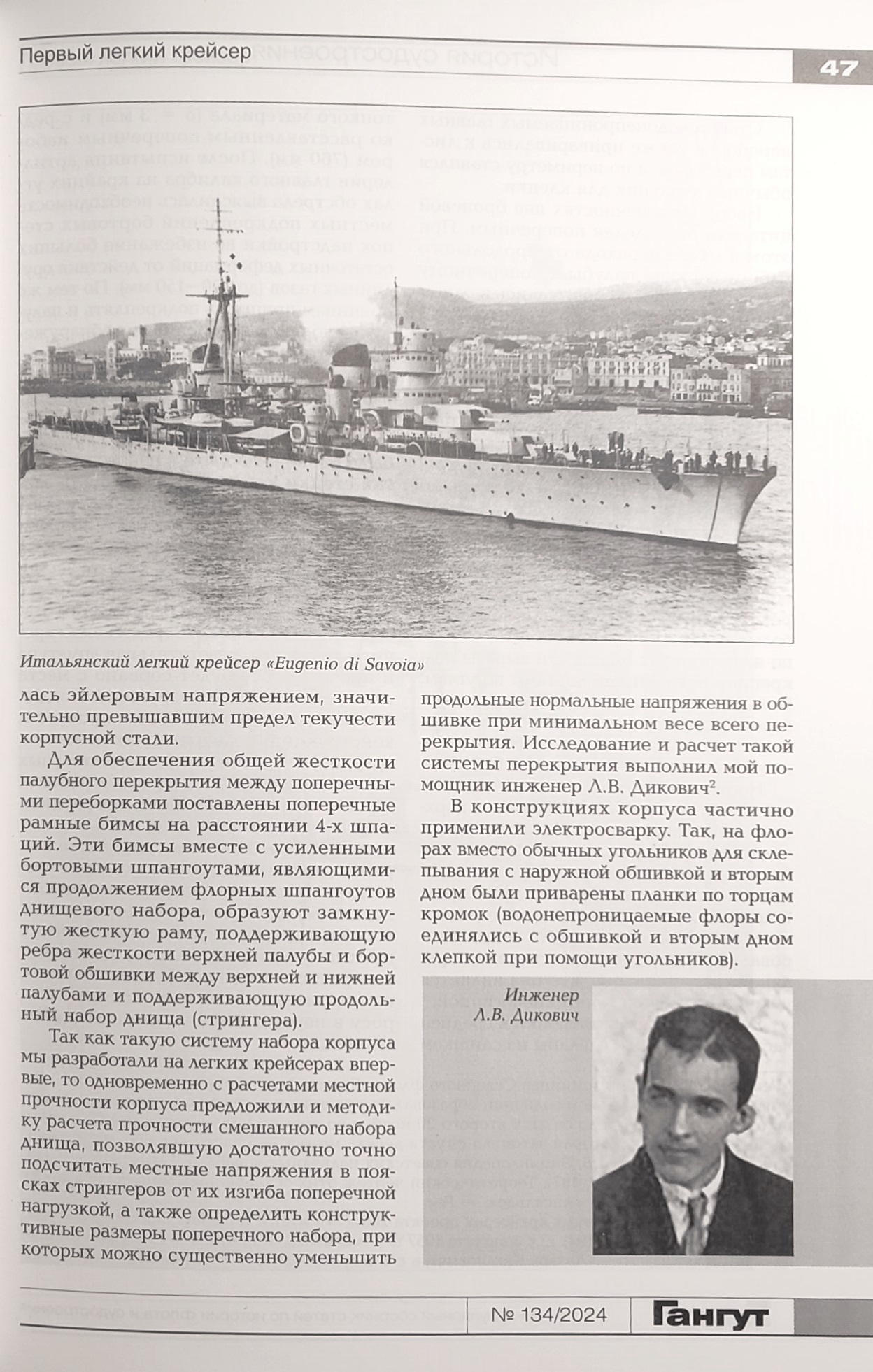 История судостроения и вооружения представлена подборкой выдержек из газеты «Голос» за вторую половину 1878 года о приобретении в САСШ трех пароходов для крейсерских действий и о постройке там же крейсера «Забияка»; статьями о ледорезе «Ф. Литке» и о судостроительных заводах в Николаеве во время оккупации города в 1941-1944 годах; воспоминаниями А. И. Маслова — главного конструктора первого советского легкого крейсера «Киров» — о работе над проектом этого корабля, и продолжением истории создания перед Первой мировой войной 130-мм орудий.