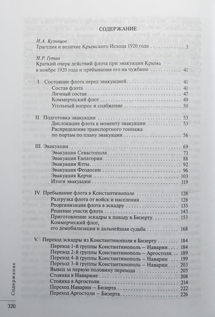 На страницах сборника впервые полностью опубликован «Краткий очерк действий флота при эвакуации Крыма в ноябре 1920 года и пребывания его на чужбине» — уникальный документ, составленный в Бизерте капитаном 1-го ранга Н.Р. Гутаном, в котором события, начиная от эвакуации из Крыма и заканчивая прибытием русских кораблей в Бизерту, расписаны с исчерпывающей подробностью практически по часам.