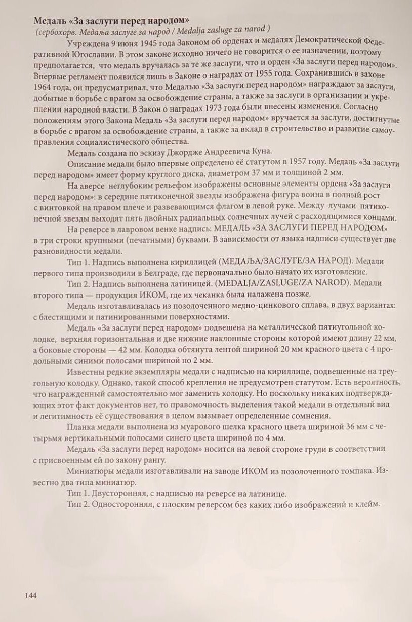 Социалистический период Югославии неразрывно связан с именем Иосипа Броз Тито, именно он ещё в годы Второй Мировой войны заложил основы наградной системы, просуществовавшей вплоть до 1991 года. Для югославской наградной системы характерны гармоничные сочетания понятных и близких простым людям коммунистических символов: братства и единства народов, равноправия и борьбы за светлое будущее. К разработке внешнего облика наградных знаков привлекались именитые югославские художники и скульпторы, хорошо знакомые с национальными предпочтениями и традициями народов Югославии. Поскольку производство наград находилось в СССР, то становится возможным проследить динамику отношений Югославии и СССР на примере изменения наград.