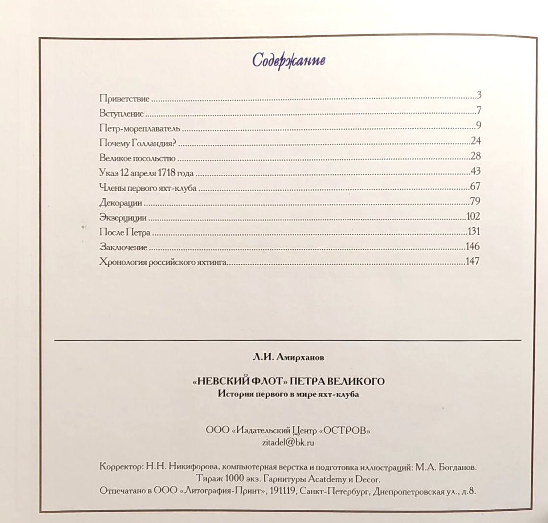 Книга посвящена первому в мире яхт-клубу — «Невскому флоту», созданному Петром Великим в 1718 году.