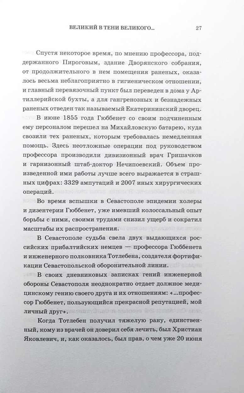 Помимо интереснейших наблюдений медицинского и бытового характера, читатель может ознакомиться с непредвзятой характеристикой важнейших участников героических событий обороны Севастополя — Нахимова, Тотлебена, Корнилова, Горчакова, Меншикова и др., а также светила отечественной медицины — Пирогова Н. И., соратника и соперника автора, чья статья «Исторический обзор действий Крестовоздвиженской общины сестер попечения о раненых и больных...» о зарождении движения медицинских сестер дополнительно включена в настоящее издание.