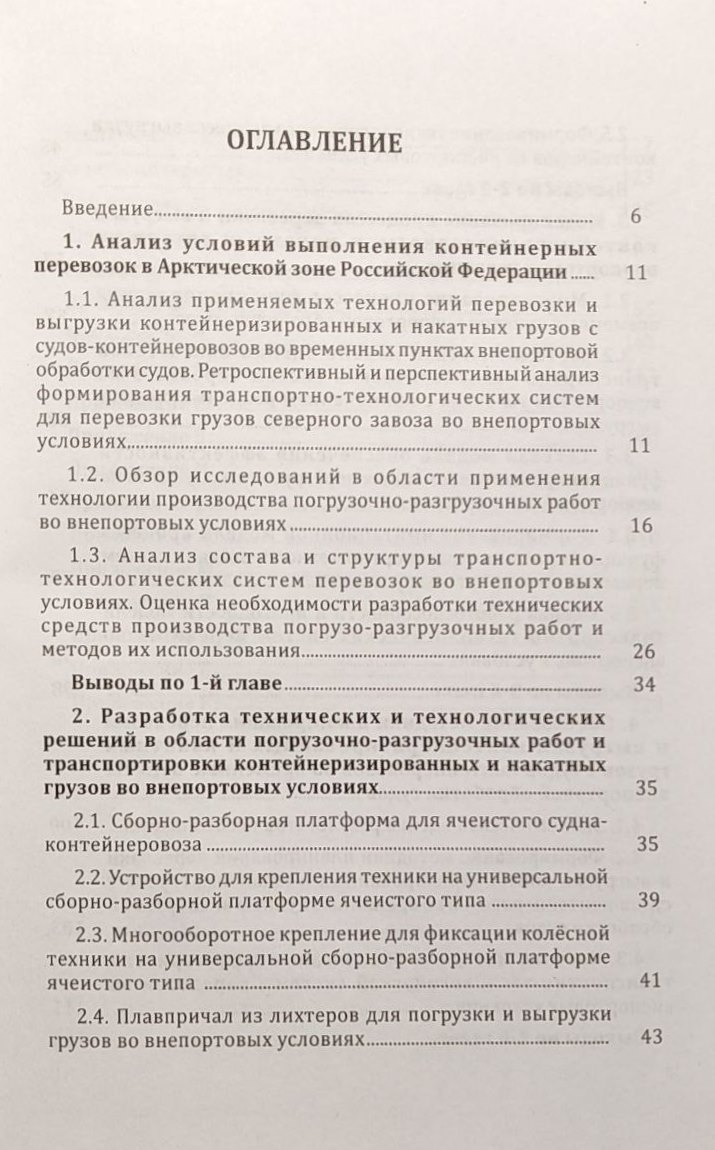 Монография посвящена актуальным проблемам транспортного обеспечения Арктической зоны РФ, фокусируясь на перевозке контейнеризированных и накатных грузов северного завоза с использованием судов-контейнеровозов во внепортовых условиях.