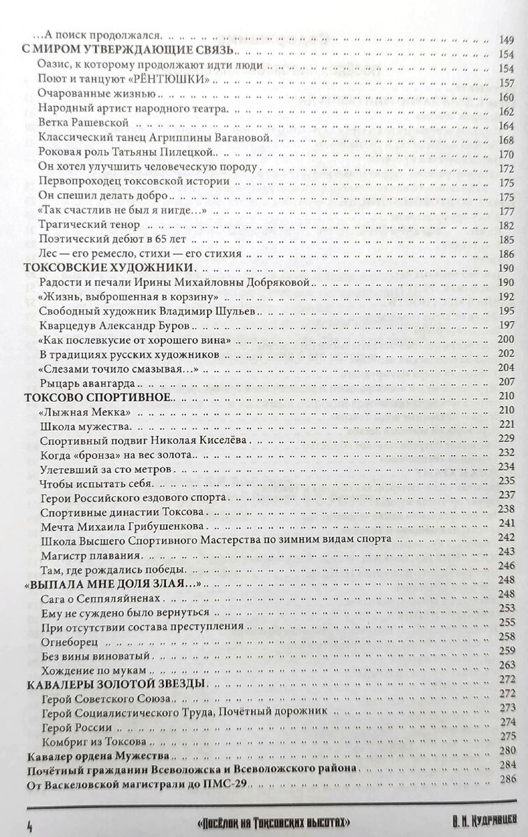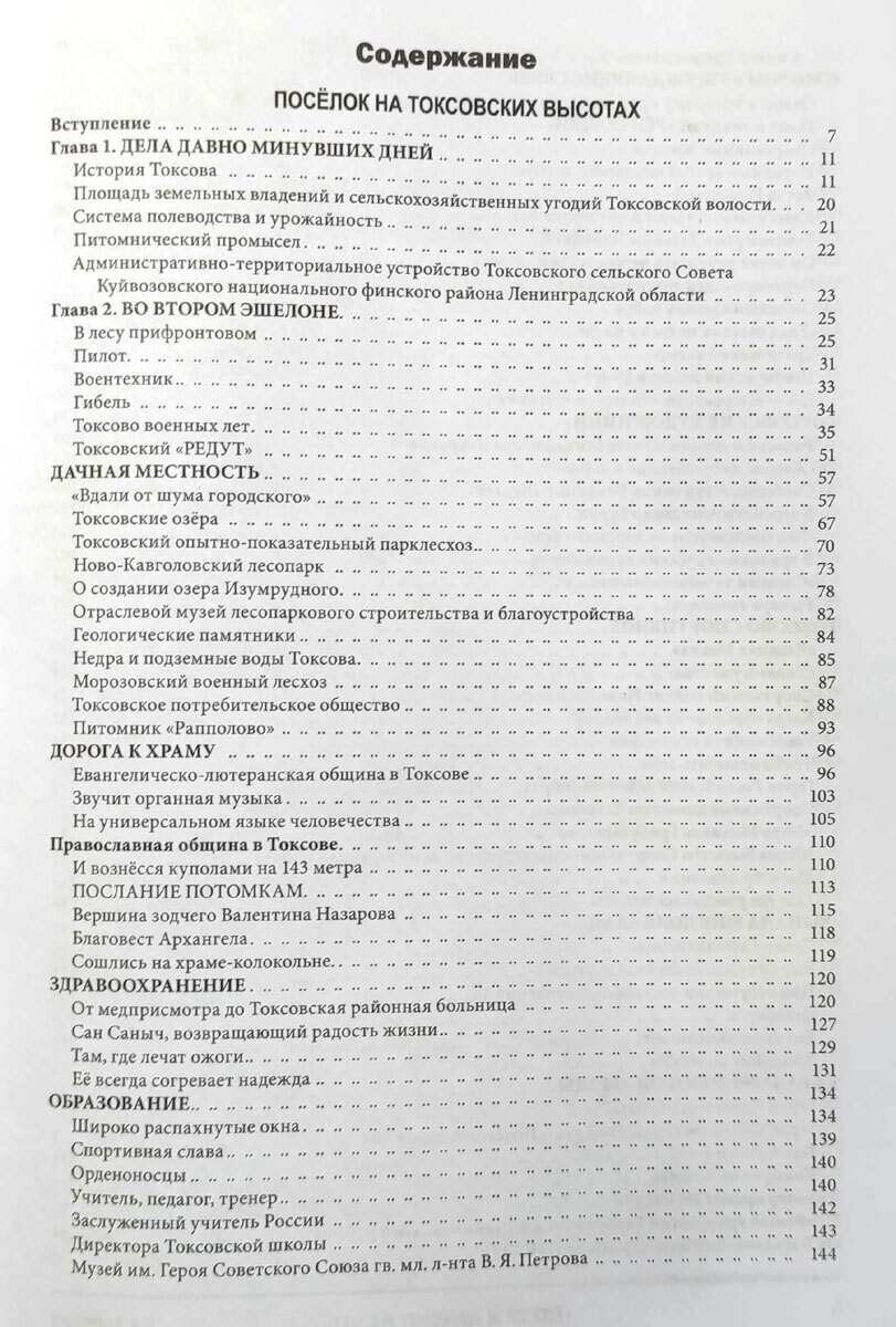 Книга рассказывает о Токсово, одном из живописнейших уголков Карельского перешейка, центре Северной Ингерманландии, некогда стоявшем на пути «из варяг в греки»; об интересном прошлом и не менее интересном настоящем края, о его культуре, людях, как давно ушедших, так и ныне живущих и оставивших свой значительный след в его истории.