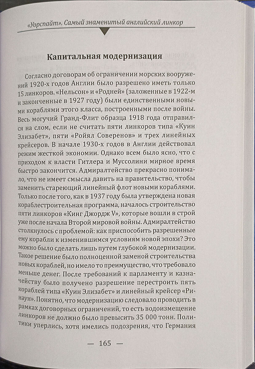 Читатель узнает о технических особенностях корабля, масштабных модернизациях межвоенного периода, его участии в ключевых операциях, а также о людях, служивших на борту — адмиралах, офицерах и простых матросах. Отдельное внимание уделено флотским традициям и терминологии королевского флота, особенностям службы, устройству вахт, организации снабжения и вспомогательным подразделениям британских ВМС.