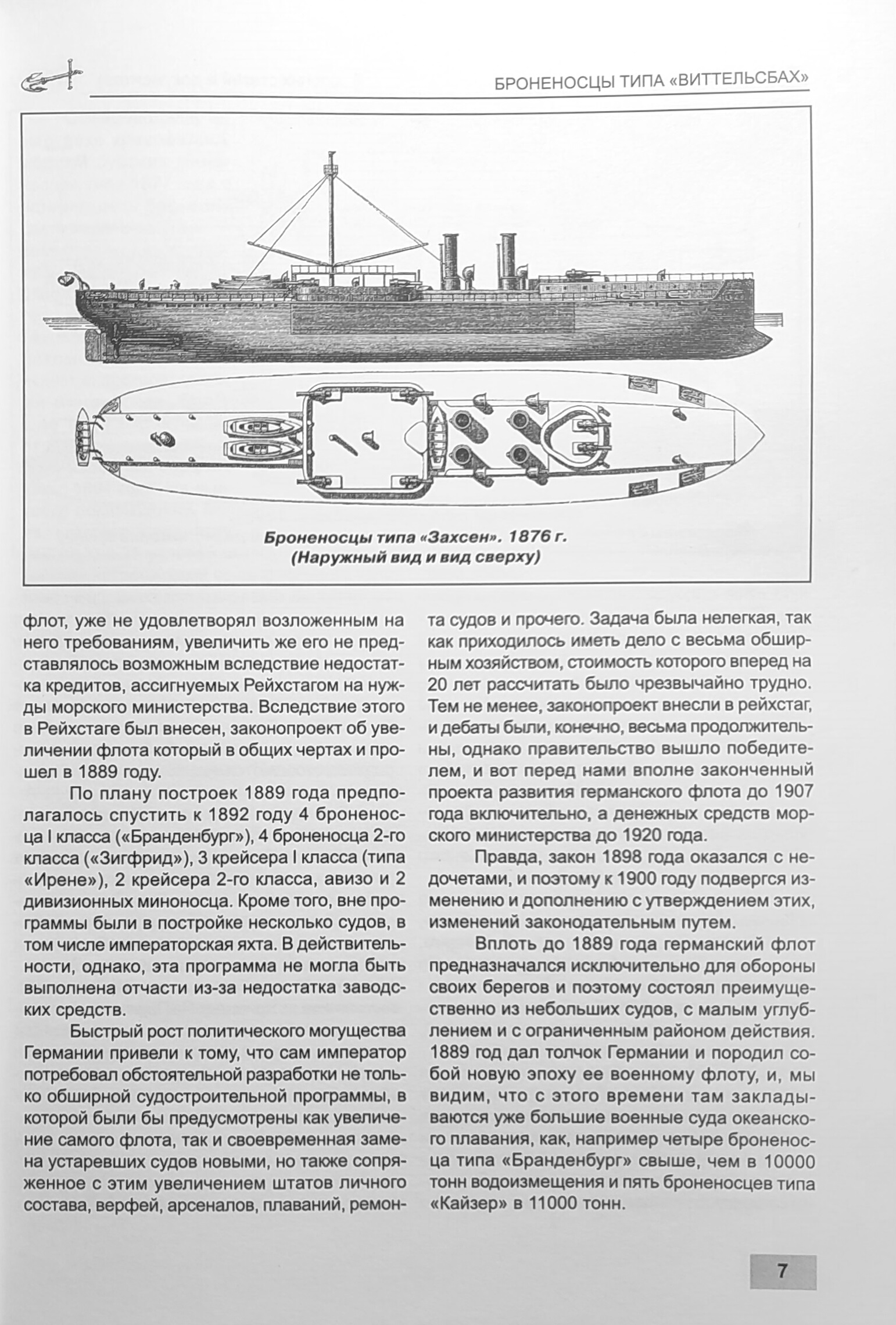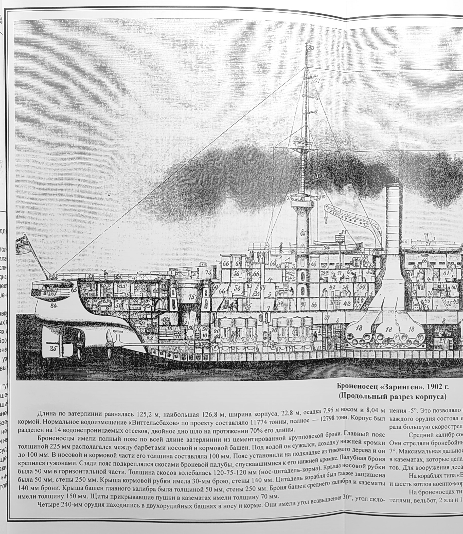 Броненосец «Виттельсбах» стал дальнейшим развитием типа «Кайзер» и отличался увеличенным на 550 т водоизмещением , что позволило внести значительные улучшения в его конструкцию. Калибр орудий остался прежним — 240 мм, несмотря на появление более современных 280-мм скорострельных пушек, разработанных компанией «Крупп». Это решение было продиктовано стремлением обеспечить тактическое единство в эскадре, состоящей из кораблей типов «Кайзер» и «Виттельсбах». Кроме того, средняя артиллерия на «Виттельсбахе» была значительно лучше защищена и более рационально расположена, что усиливало общую эффективность судна в боевых условиях.